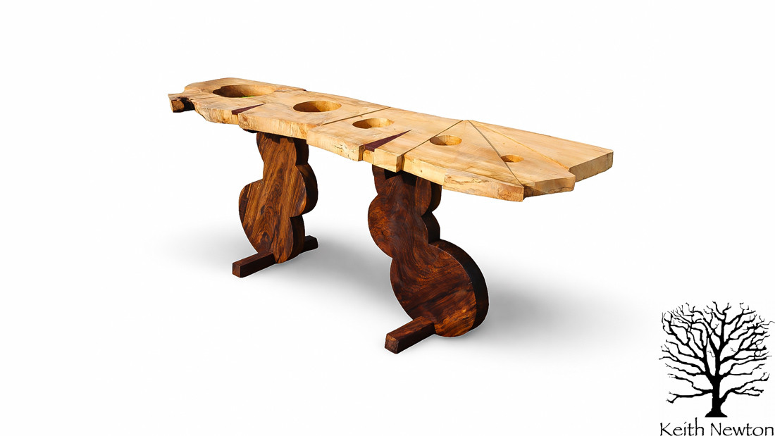 MAPLE AND BLACK WALNUT TRIANGLE CONSOLE TABLE